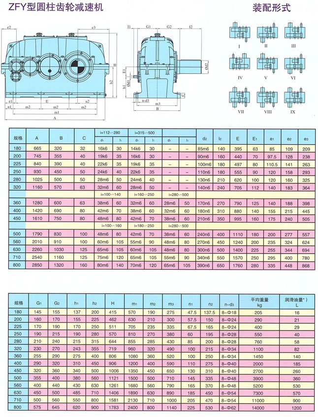 说明:ZFY:三级传动硬齿面圆柱齿轮减速机,315:低级中心距为315mm,